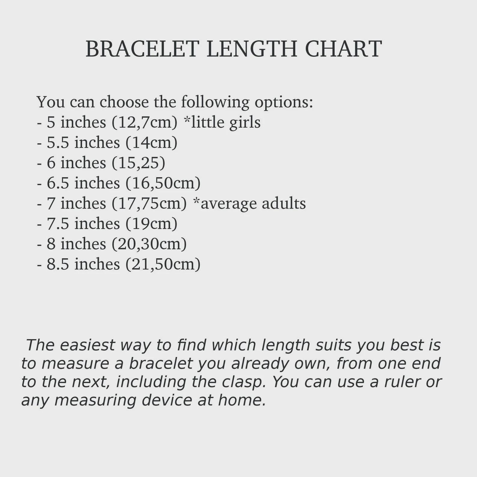 To find the best length for you, measure a bracelet you already own from end to end, including the clasp