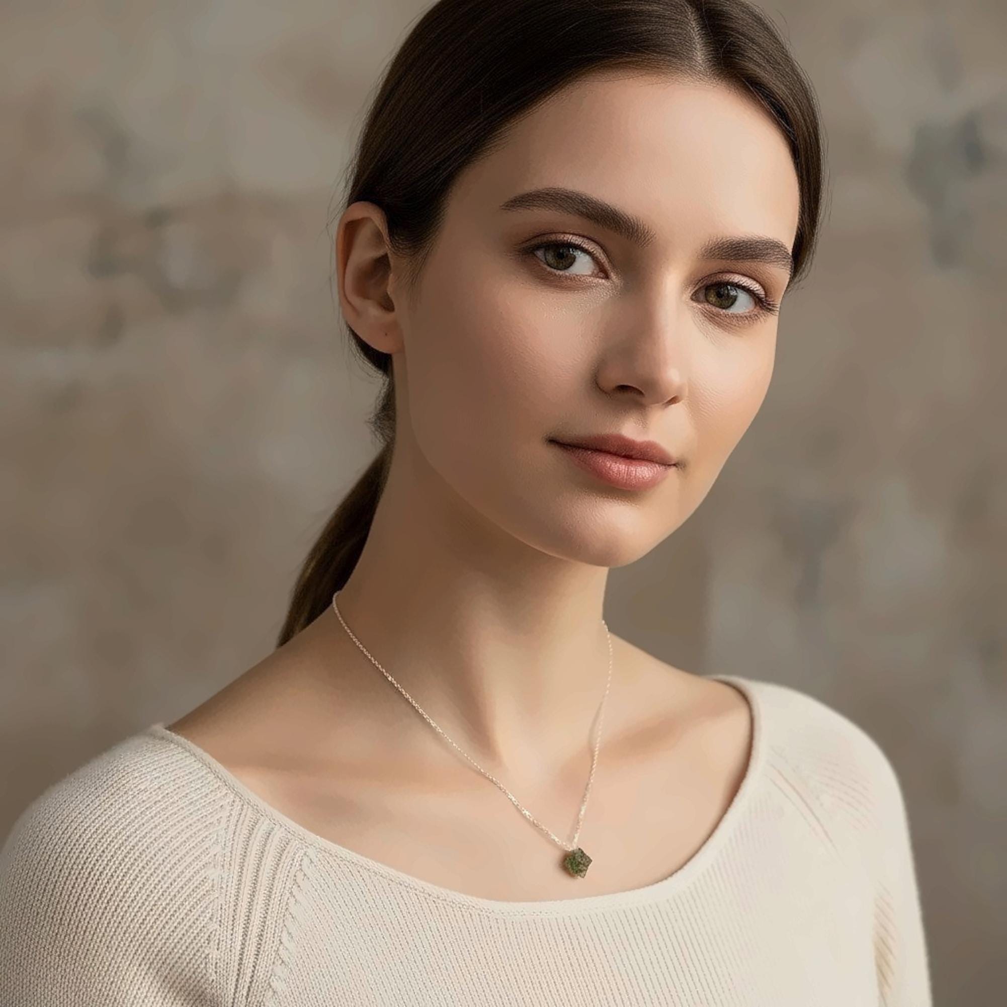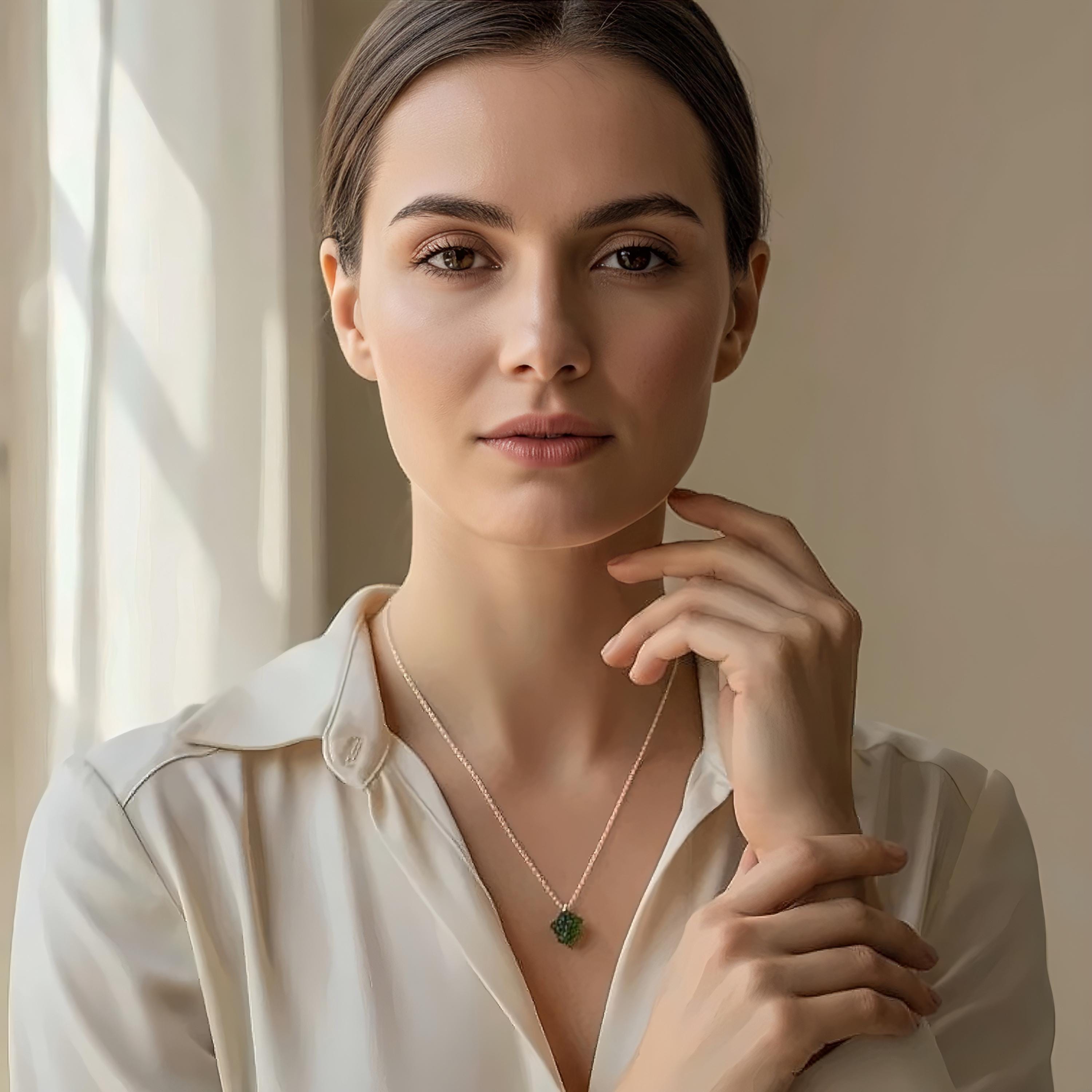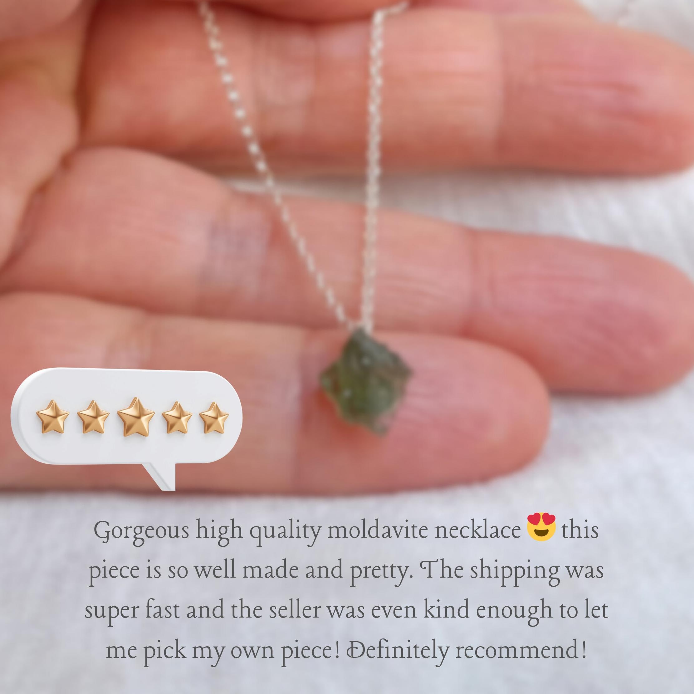 ⭐ A powerful touch of the cosmos—perfect for spiritual seekers, crystal collectors, or anyone who loves unique, meaningful jewelry. This dainty rough moldavite necklace features an authentic tektite stone, each one naturally formed by a meteorite impact in the Czech Republic.