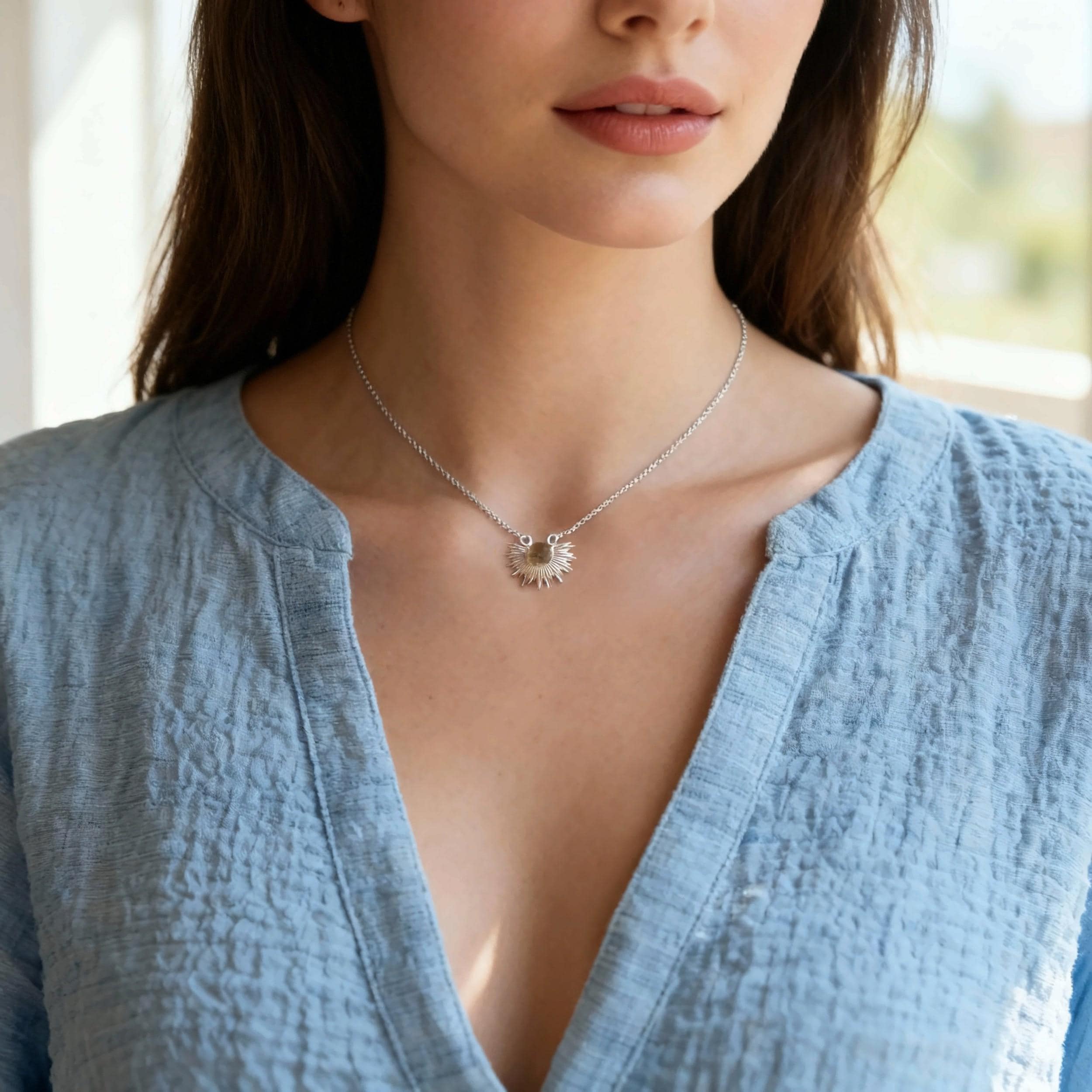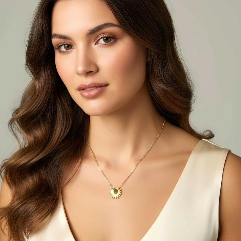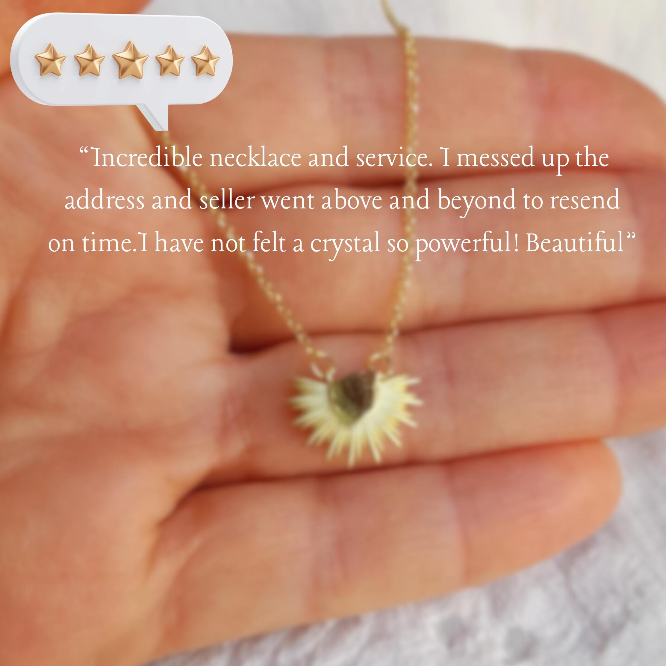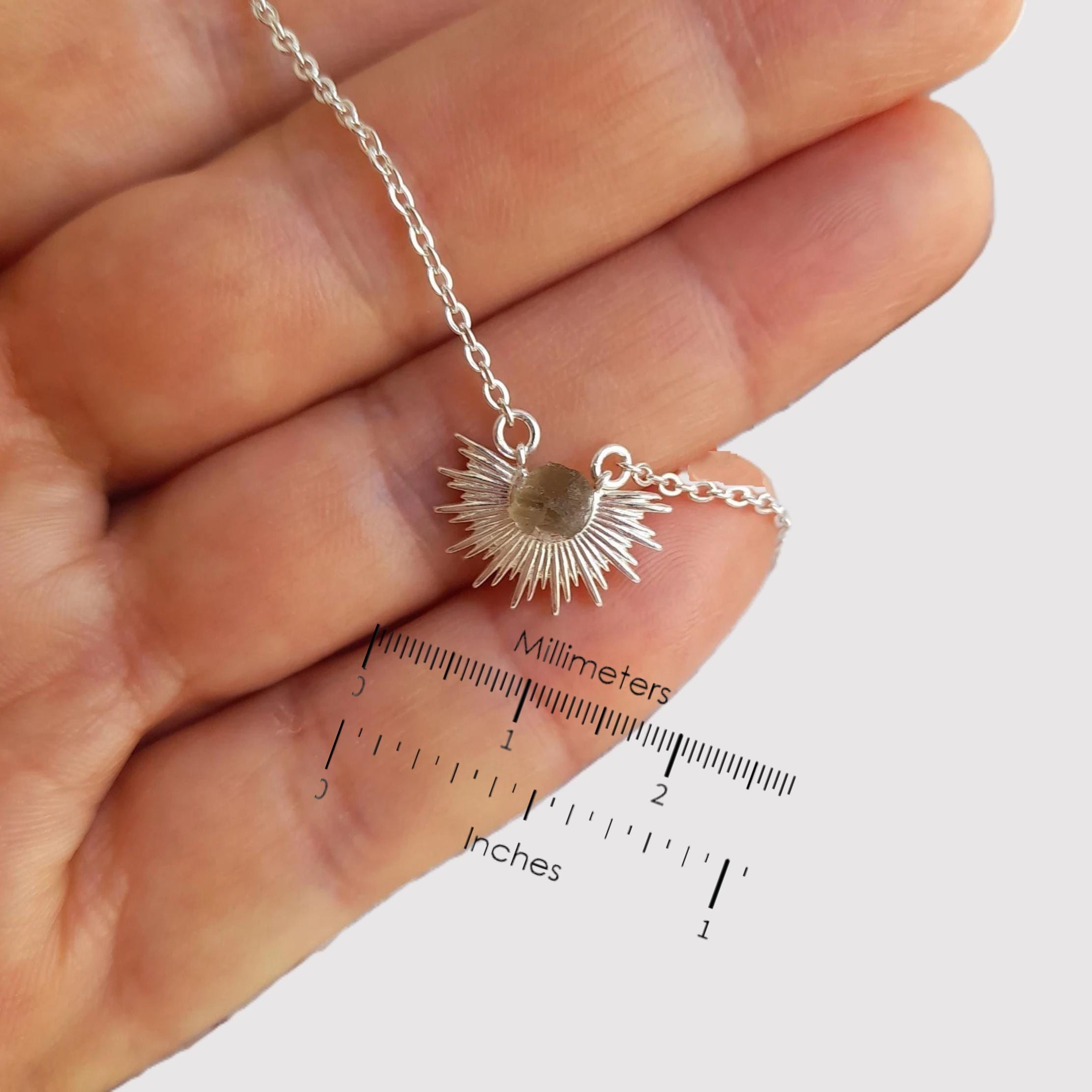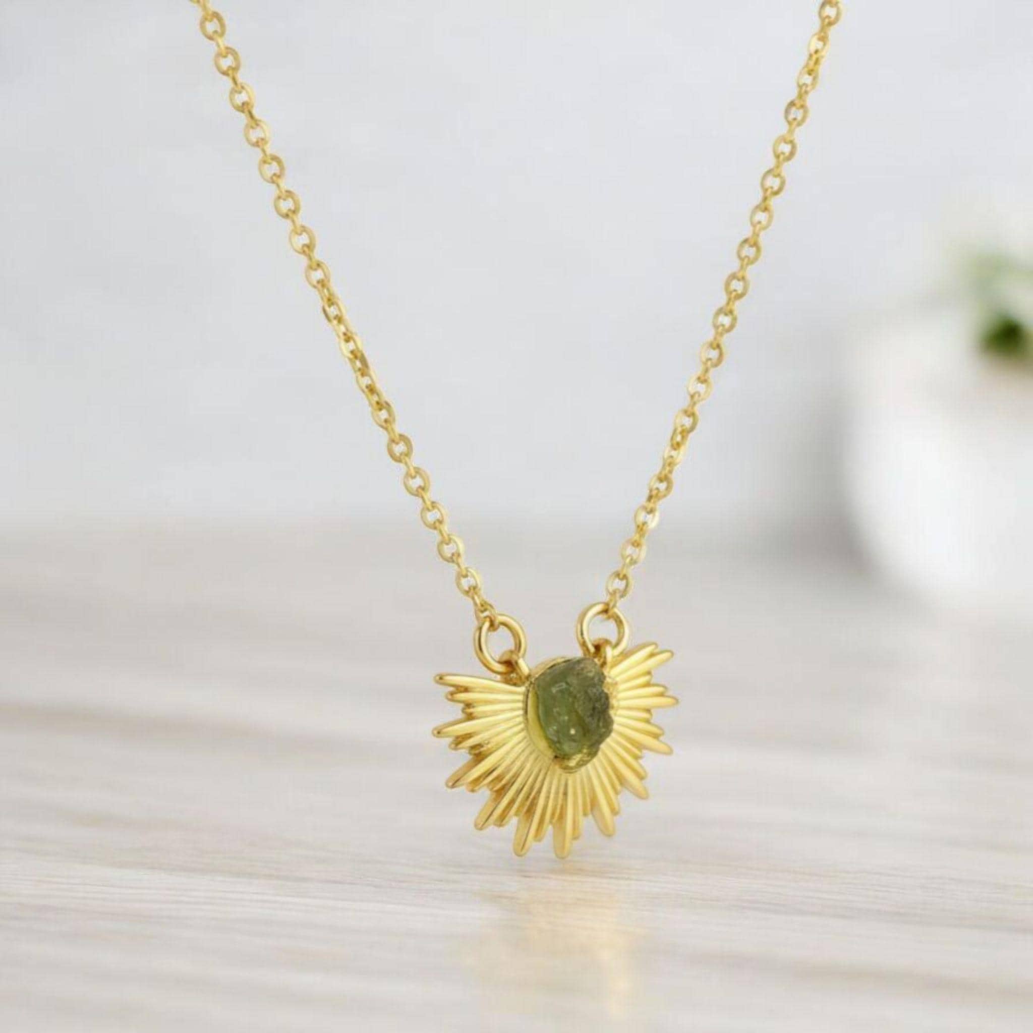 ⭐Perfect for anyone seeking high vibration jewelry with an uplifting energy story—this dainty moldavite necklace features a natural Czech meteorite sun pendant, designed to energize and inspire just like the sun itself.