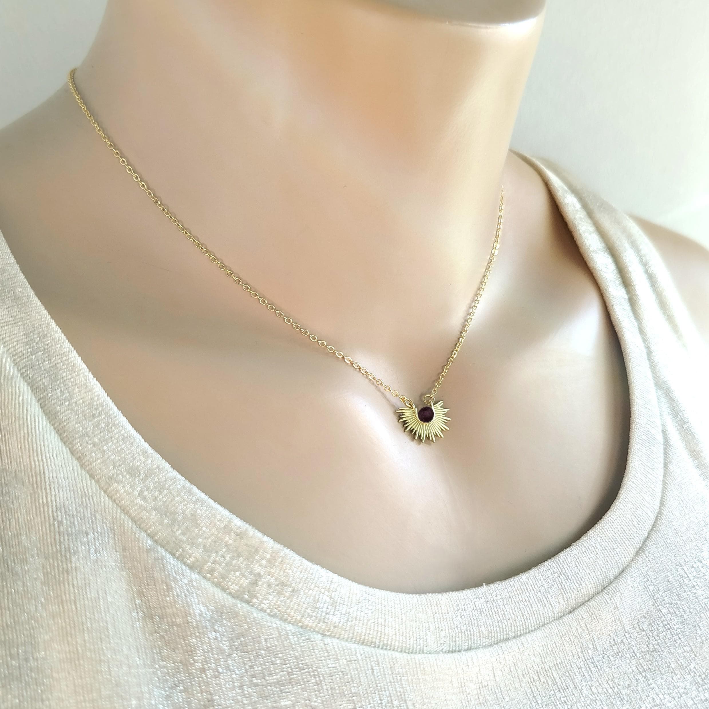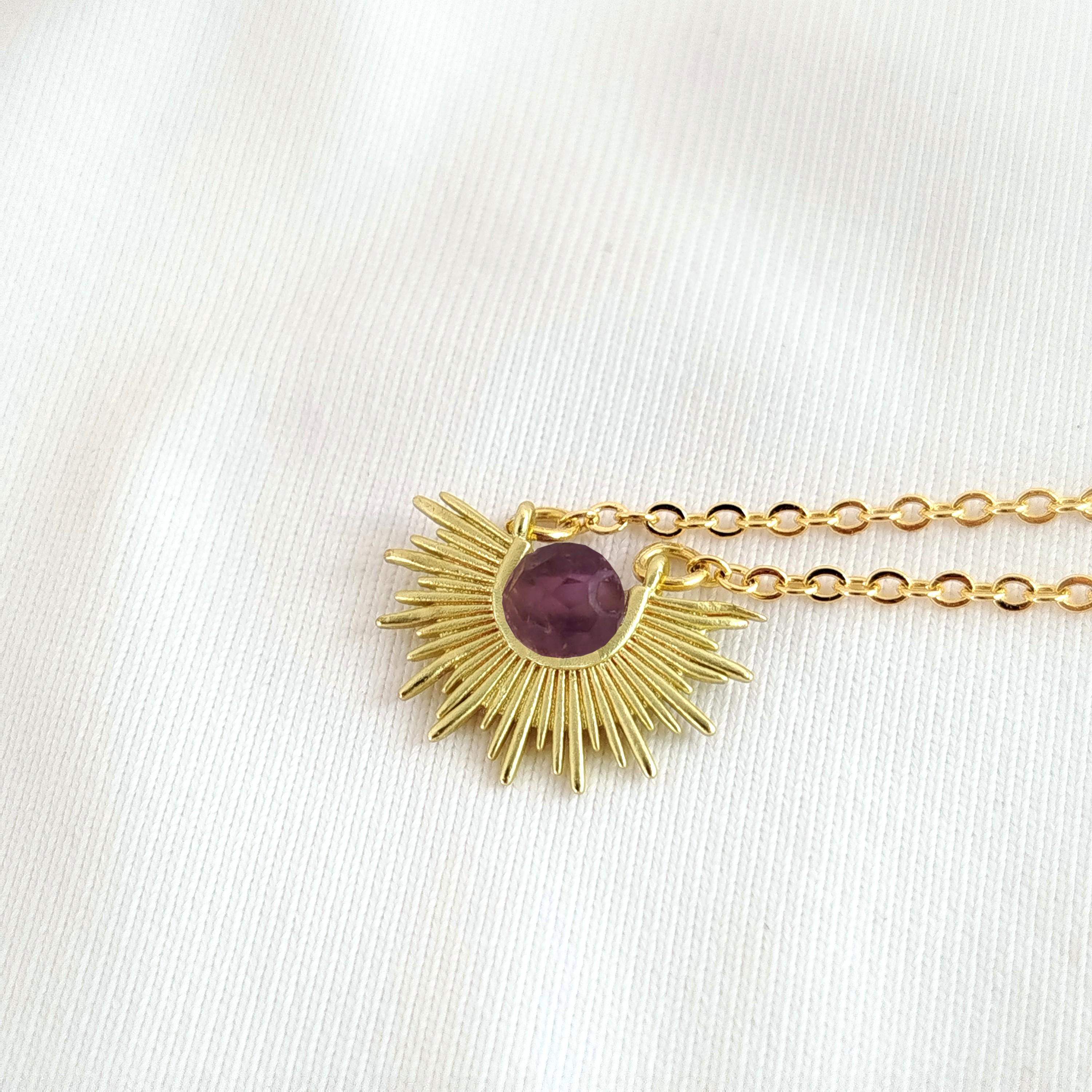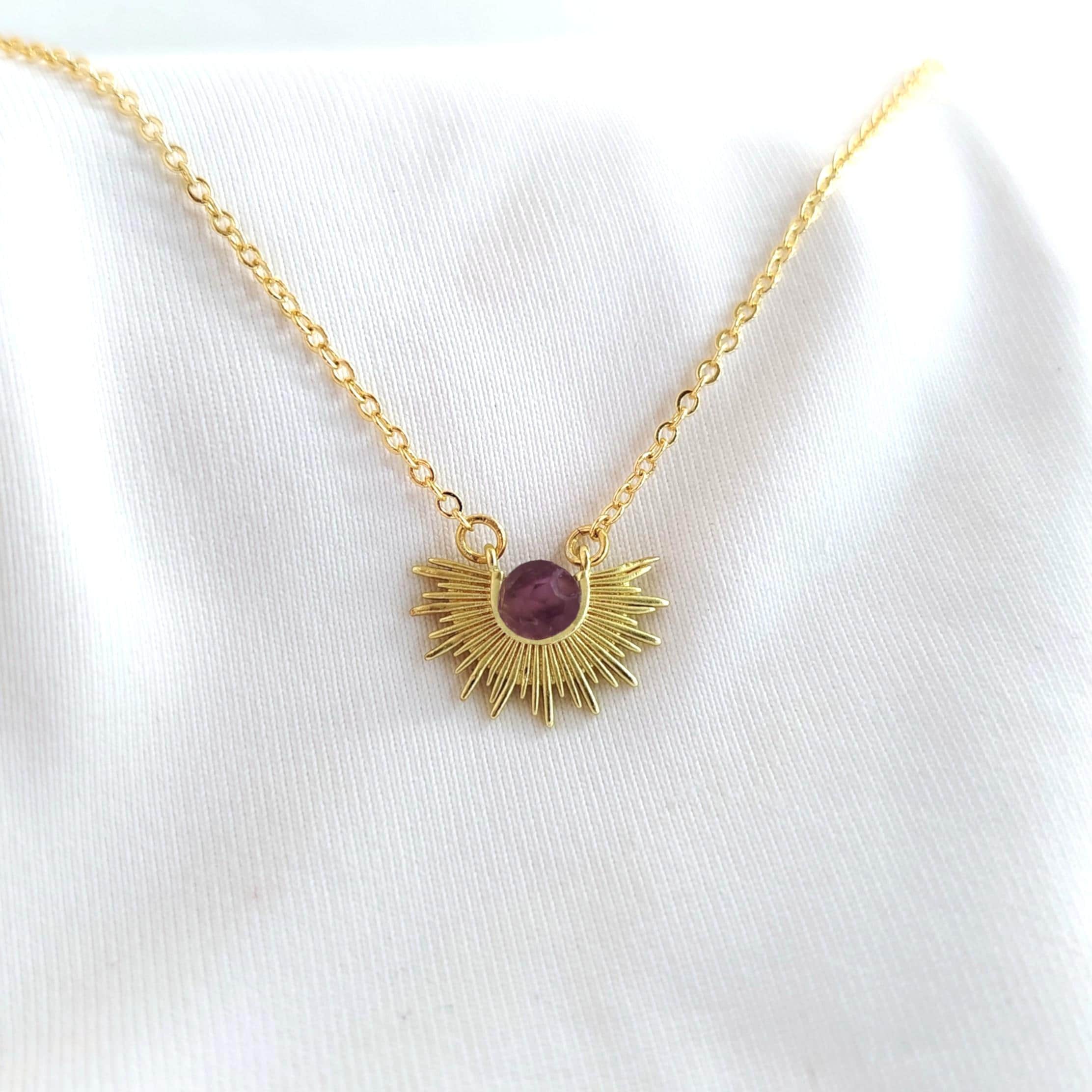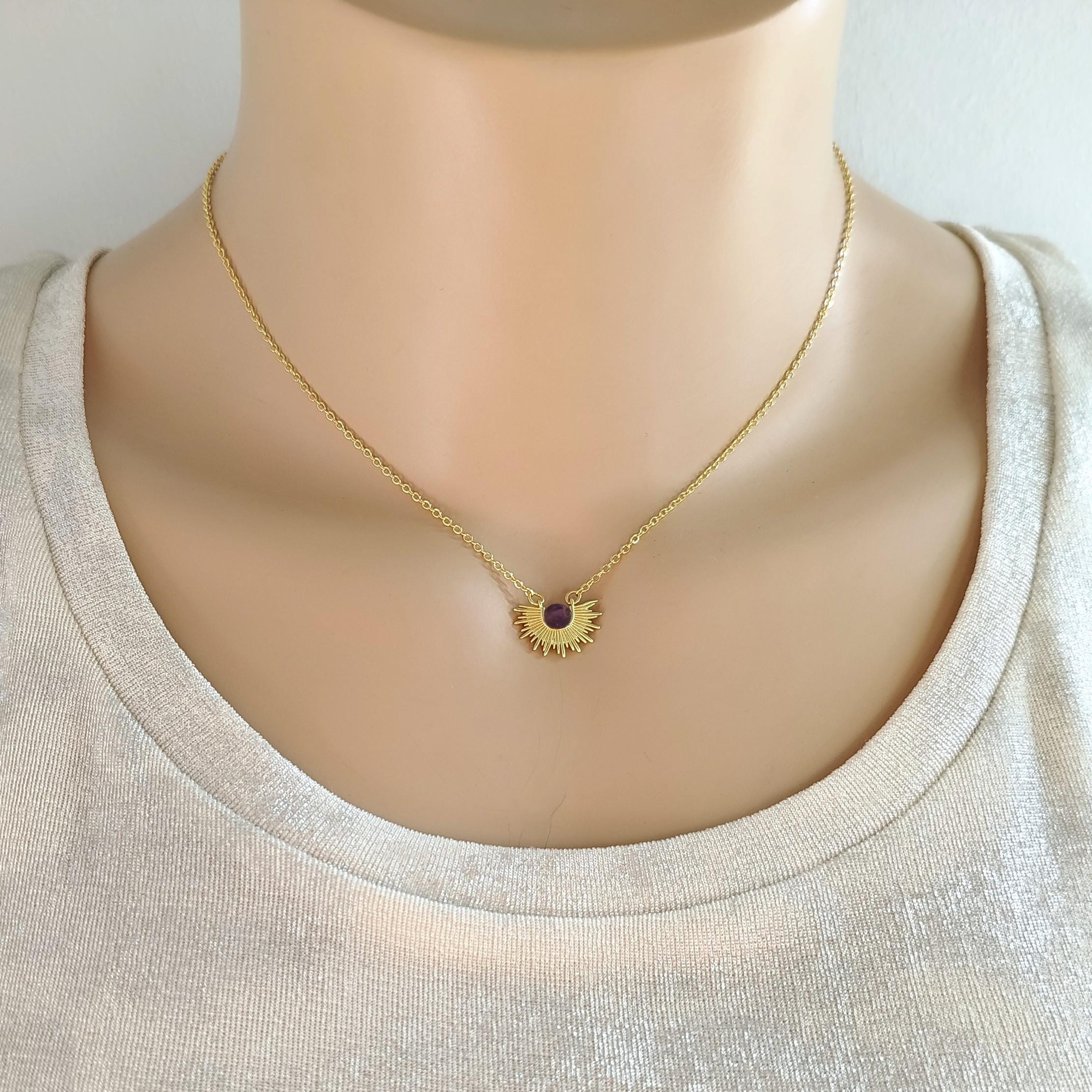 ⭐ Super dainty amethyst gemstone featured in a half sun pendant. A crystal that radiates clarity, calm, and spiritual balance. A unique piece to wear every day and feel its gentle energy close to you.