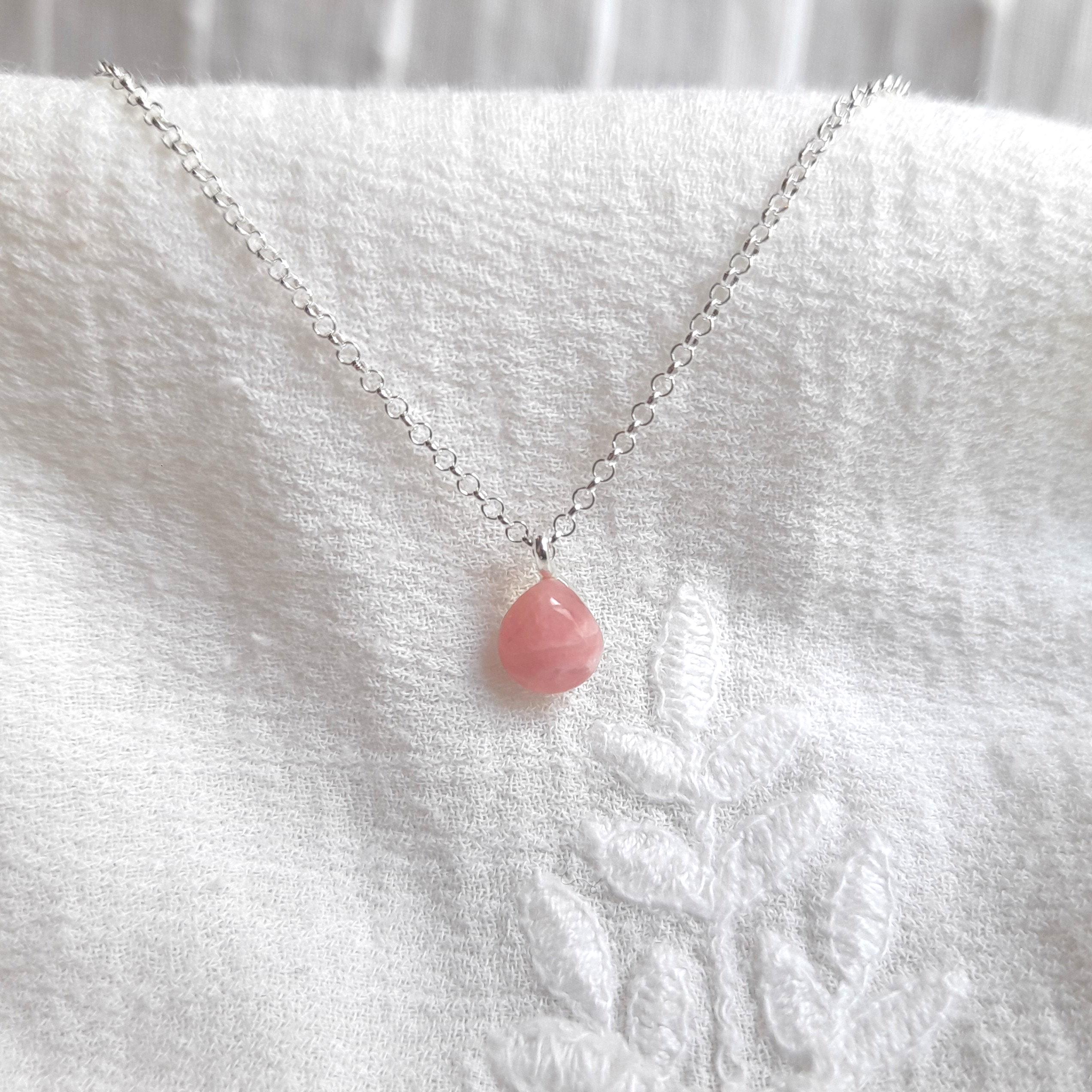 ⭐ Lovely rhodochrosite stone pendant in pear shaped. The soft pink color makes this necklace look very delicate and warm. Perfect gift for Scorpio and Leo love ones!