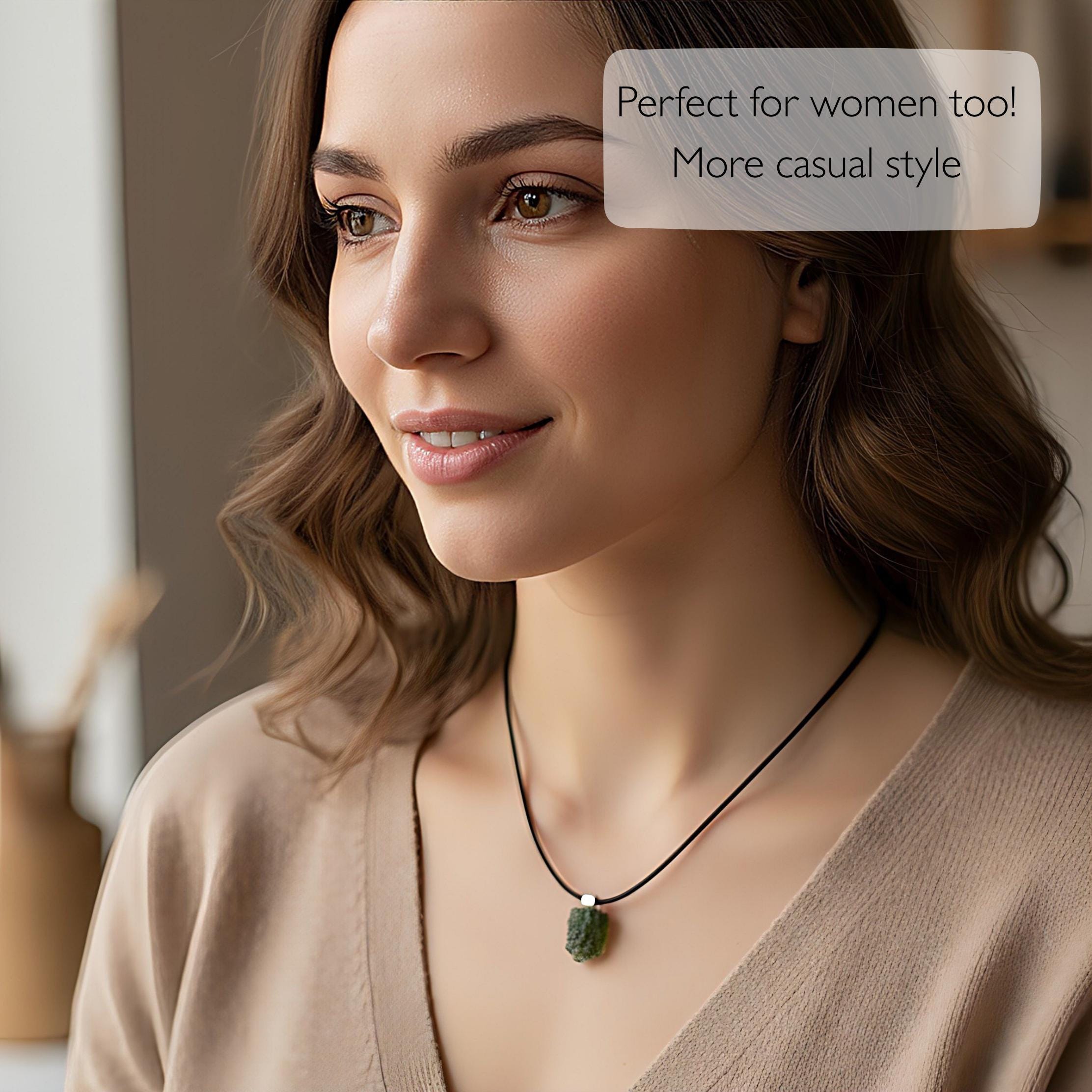 ⭐ Experience the energy of the cosmos with this genuine moldavite necklace, crafted from rare tektite sourced in the Czech Republic. Designed as unisex jewelry, each raw crystal delivers a unique and authentic look—no two pendants are alike. This piece is perfect for men and women who appreciate boho style, natural stone accents, and one-of-a-kind gifts that carry a high vibration. If you are looking for a necklace with powerful energy, this meteorite is for you. Known for metaphysical properties and transformation, this tektite is more than just an accessory—it’s an invitation to connect with something greater.